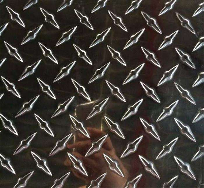指針花型的花紋鋁板:就是普通意義上的指針花紋鋁板,又稱防滑鋁板,和五條筋起到相同效果。具有良好的防滑效果,主要用于車廂,平臺防滑,冷庫地板防滑,車間地板防滑,電梯防滑方面。而對于特殊地方(比如需要懸空,或者在高腐蝕度,或者容易生銹腐蝕的地方)建議選用5052或者6061指針花紋鋁板,該系列指針花紋鋁板的防銹,耐腐蝕性能優良。